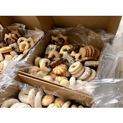 1000g - MOŽNOSŤ OBJEDNÁVKY s odberom 23.12.2025. Krabica obsahuje vianočné pečivko mix druhov, ktoré pečieme bez margarínov, výlučne z masla, orieškov, kvalitných ovocných džemov podľa domácich receptov. Nepoužívame žiadne náhrady čokolády, výlučne pravú čokoládu.